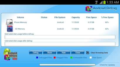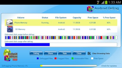 ★ Selecione Memória telefone ou Cartão SD de sua lista e clique em Defrag, que é fácil!